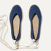 The Espadrille in Navy Stripe shown from the top, with the ankle tie.