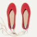The Espadrille in Red Hot shown from the top, with the ankle tie.
