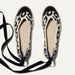 The Espadrille in Sandy Cat shown from the top, with the ankle tie.