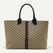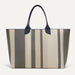 PLP |The Lightweight Mega Tote in Mulberry Rugby Stripe, shown from the from the front.